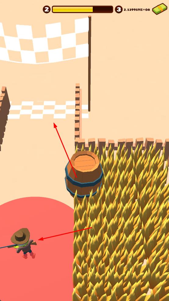 1、操控木桶在路徑移動,通過方向控制調(diào)整行進方向,避開紅色區(qū)域的敵人,防止木桶被攻擊,開啟收集挑戰(zhàn)。