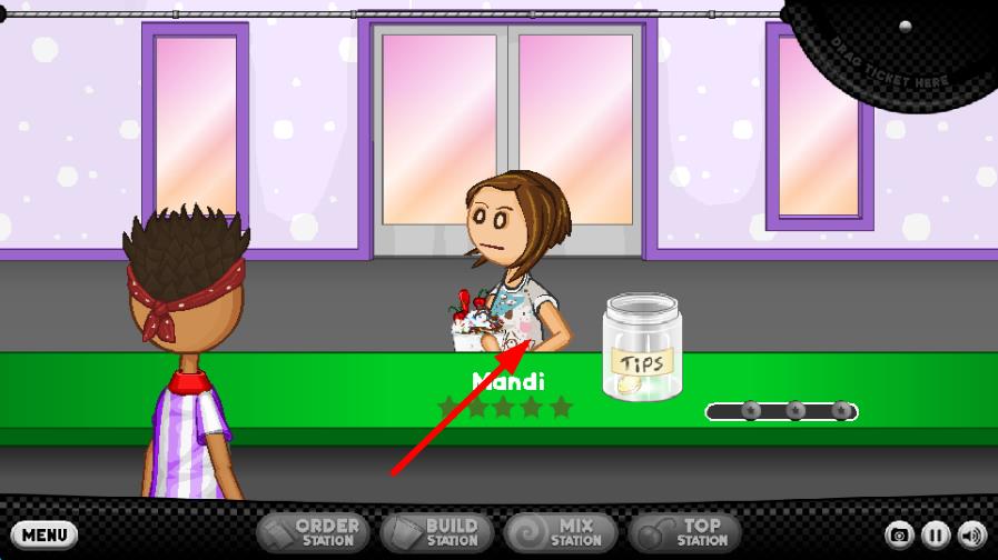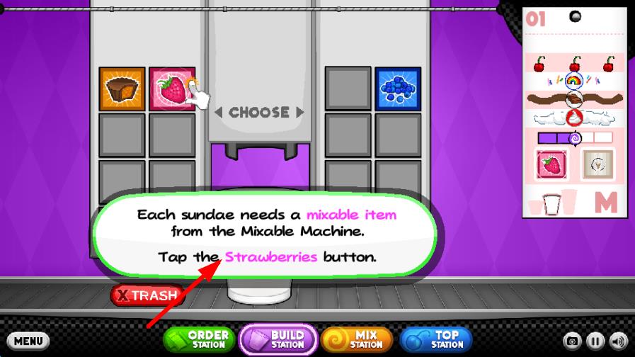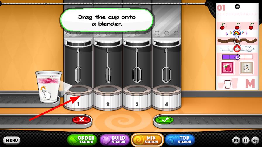 1、進(jìn)入游戲后,熟悉冷飲制作臺的布局,根據(jù)第一位顧客的訂單,選取基礎(chǔ)原料如牛奶、奶油,按步驟制作簡單冰淇淋,完成后交給顧客獲得初始金幣。