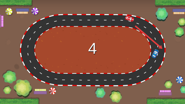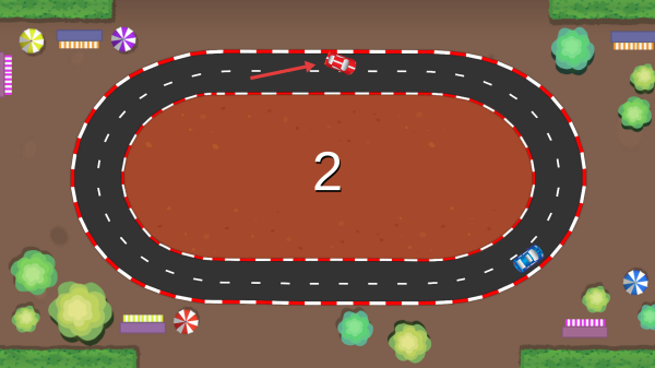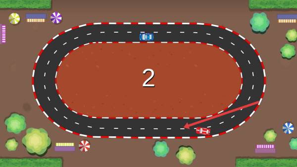 2、到了第二圈在環(huán)形賽道,利用直道加速拉近差距,彎道精準(zhǔn)控速卡住超車,留意躲開(kāi)行駛過(guò)來(lái)的車。