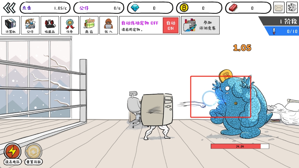 1、點擊收集零件:當我們持續(xù)點擊計算機不同的部位,會觸發(fā)妖怪掉落零件,快速點擊能讓零件掉落更密集,注意區(qū)分有用零件和搗亂的妖怪,避免浪費操作。