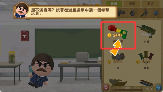 3、游戲內(nèi)置80多種獨(dú)特武器,從普通的板凳到尖端科技裝備,應(yīng)有盡有,助你釋放壓力盡情“暴揍”老板。