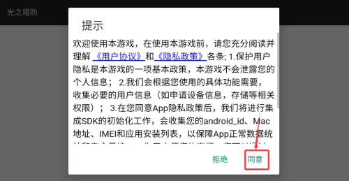 1、首次啟動需閱讀并同意用戶協(xié)議,完成授權(quán)后即可進(jìn)入游戲主界面。