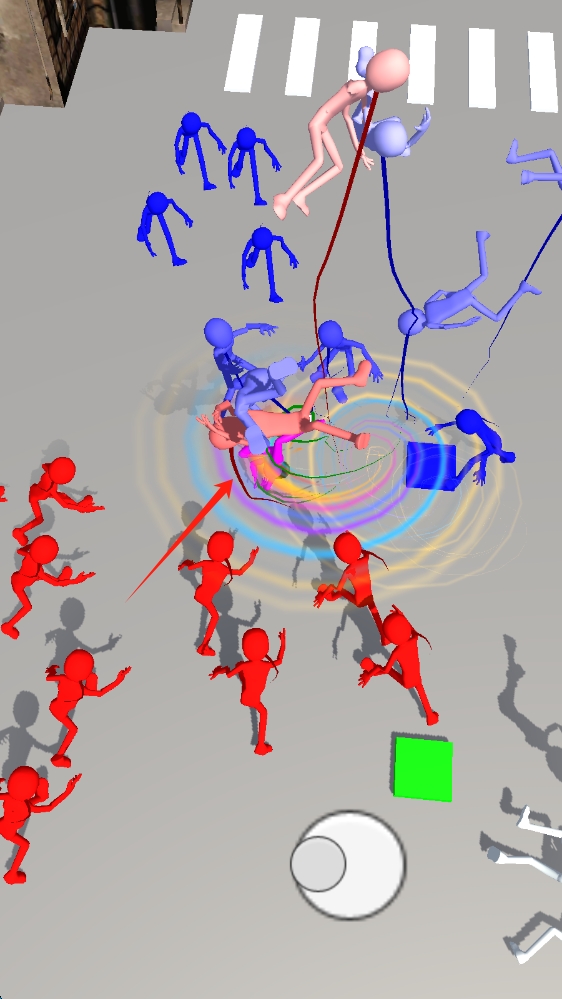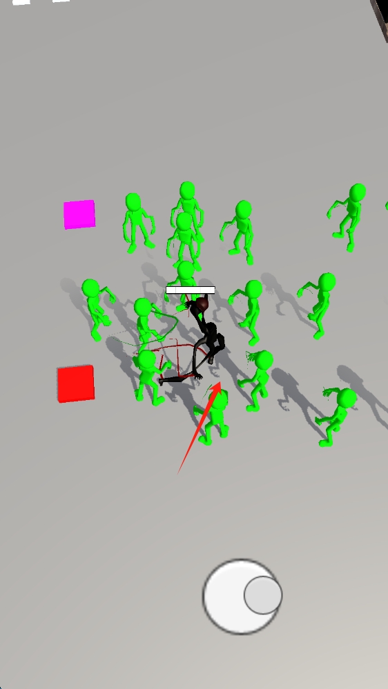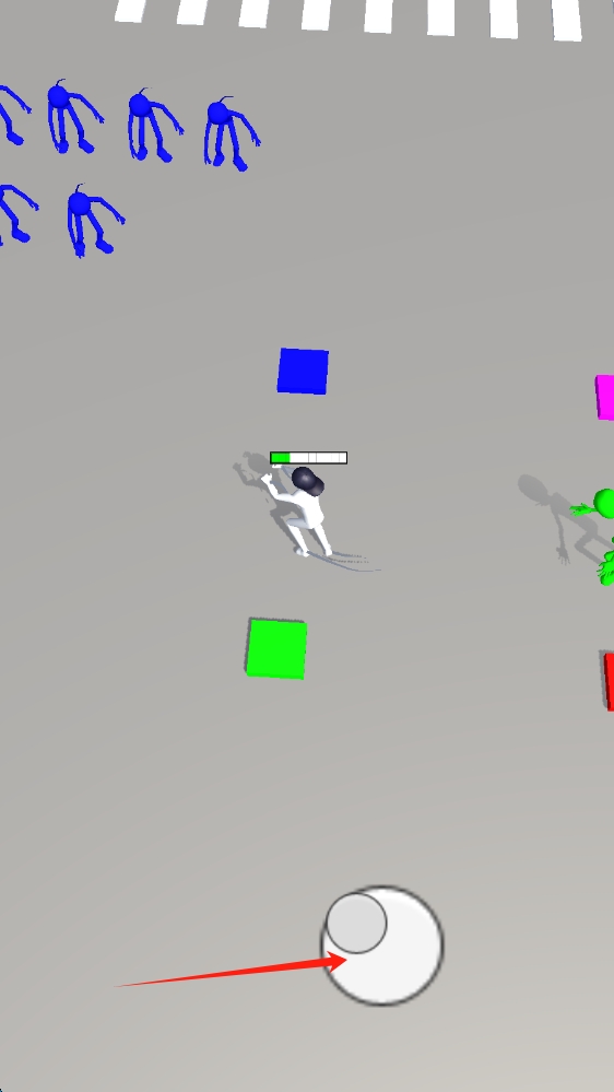 1、在游戲操作界面,靈活使用虛擬搖桿,控制角色在場景中移動(dòng),收集各種顏色的方塊,為后續(xù)戰(zhàn)斗做準(zhǔn)備。