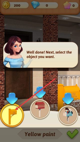 1、開啟游玩進入裝飾房間的頁面,按指引選目標的裝飾,按照自己的喜好選擇,點綠色對勾確認。