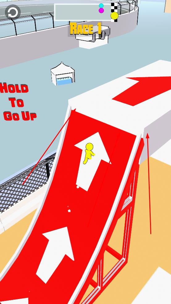 3、按住屏幕控制角色上坡,朝著終點目標努力,同時留意對手位置,爭取率先沖線。