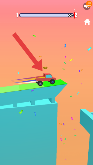 2、遇到中間有空缺的地區(qū)時(shí),可以向上滑動(dòng)車輪讓車飛躍障礙,不然容易掉落使關(guān)卡失敗。