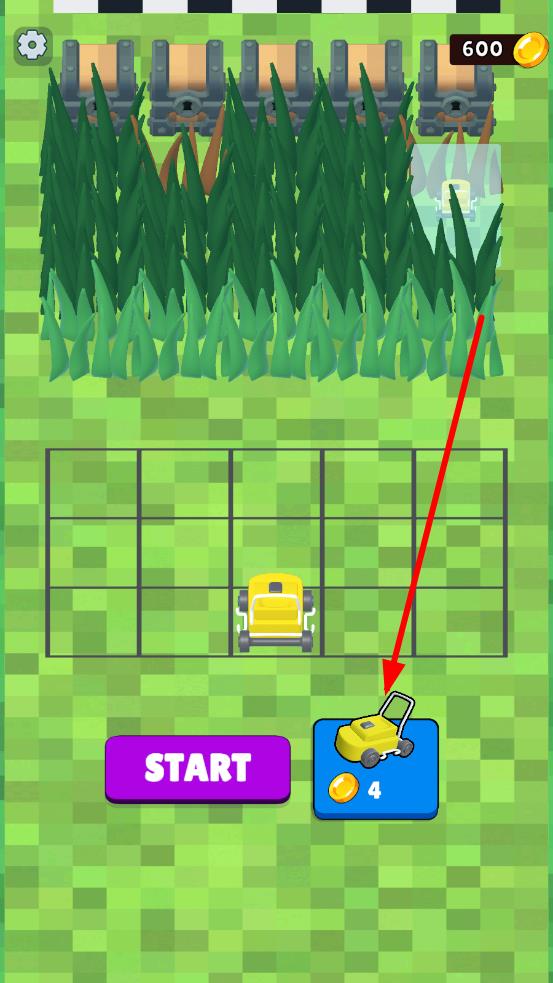 2、割草過程中,玩家可以觀察寶箱的位置,規(guī)劃割草機(jī)的始發(fā)位置,從而獲得寶箱,拿到金幣,用以獲取割草機(jī)。