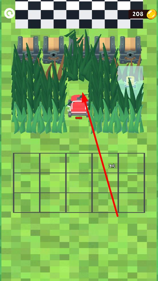 3、操控升級(jí)后的割草機(jī),規(guī)劃最優(yōu)路線突破層層草叢封鎖,朝著頂部方格旗區(qū)域推進(jìn),成功抵達(dá)后,解鎖金幣獎(jiǎng)勵(lì)與倍數(shù)加成轉(zhuǎn)盤的選擇機(jī)會(huì)。
