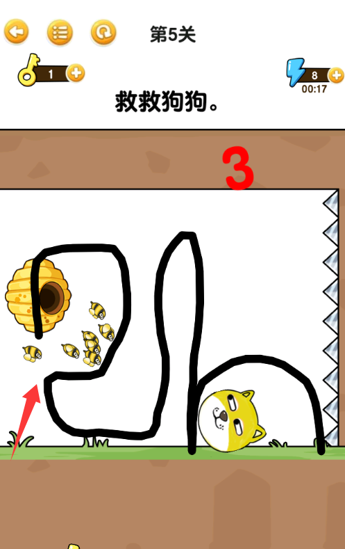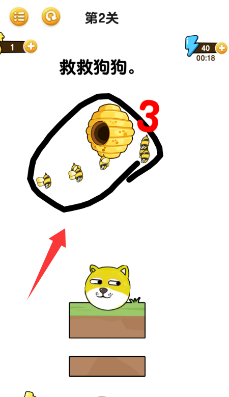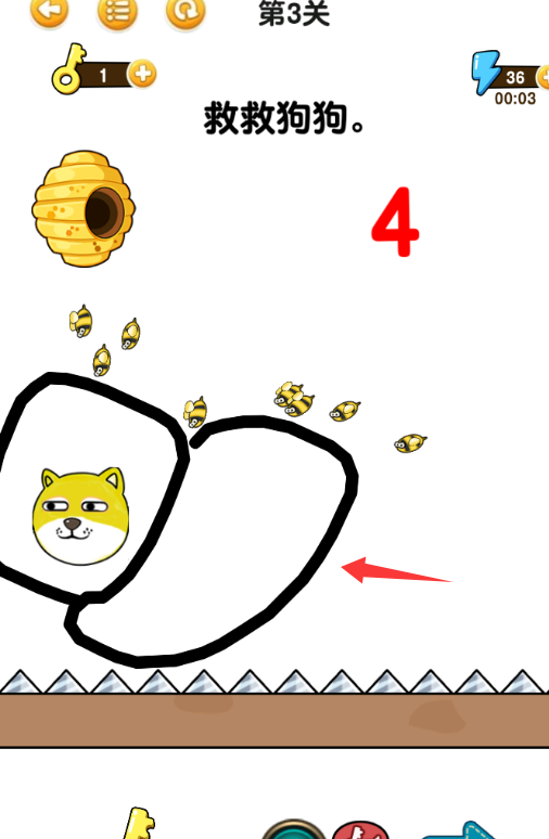 2、進(jìn)入游戲畫個(gè)圈圈圈住蜜蜂家就蟄不到狗頭。