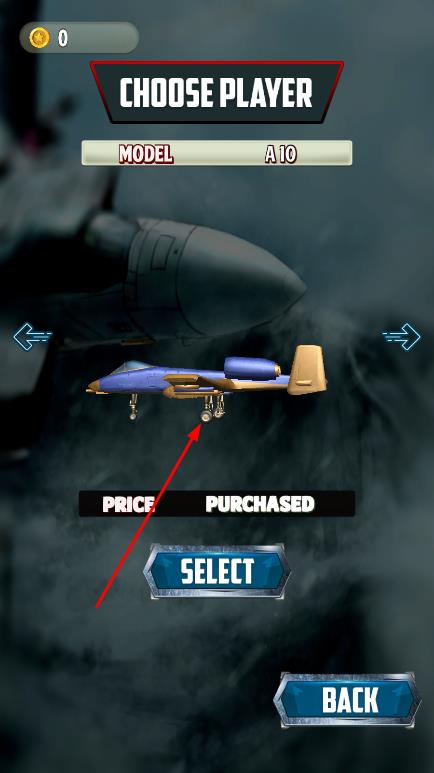 1、進(jìn)入游戲,在主界面點(diǎn)擊PLAY按鈕,在選擇界面,選擇想要駕駛的戰(zhàn)斗機(jī),點(diǎn)擊SELECT按鈕,進(jìn)入場(chǎng)景。