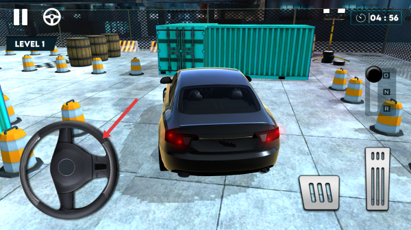 1、在游戲中,通過屏幕上的油門和剎車,控制車輛的速度,在停車場中行駛。