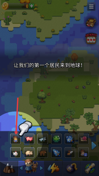 1、在游戲中,選擇第一個居民,讓他來到你的地球世界,準(zhǔn)備后續(xù)發(fā)展。
