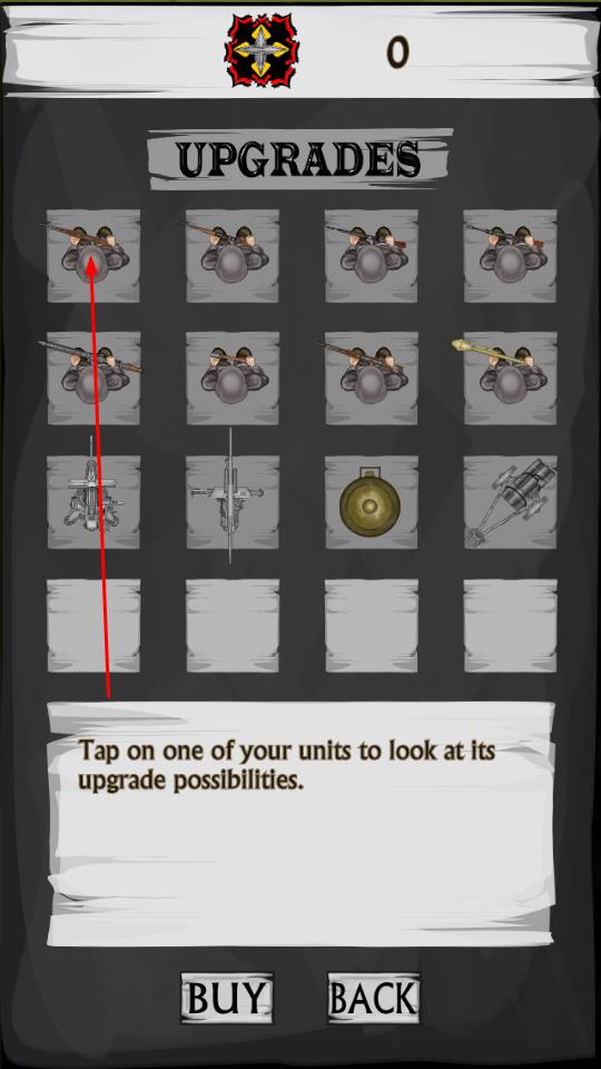 2、進(jìn)入UPGRADES界面,點擊士兵等單位圖標(biāo),查看其升級可能性,消耗資源提升單位屬性,就需要去增強防御戰(zhàn)力。