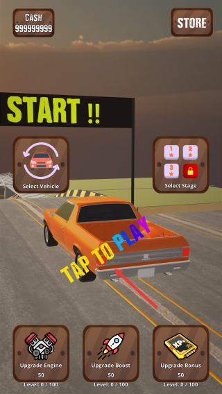 1、在游戲中,點擊TAP TO PLAY,開始駕駛車輛在賽道上行駛,挑戰(zhàn)不同的關卡和距離。