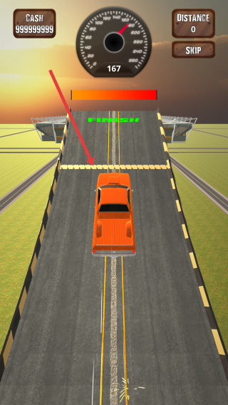 2、在游戲過程中,按住屏幕,留意速度表和距離顯示,控制車輛的行駛速度,收集獎勵,提升游戲成績。