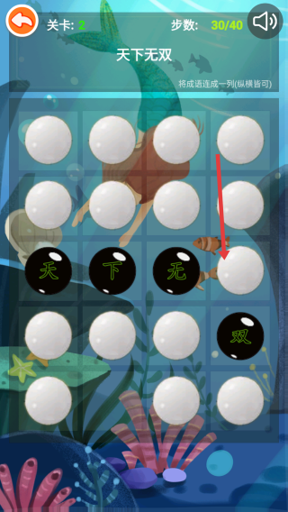 3、在天下無(wú)雙關(guān)卡中,需要將天下無(wú)雙連成一列,縱橫皆可,通過(guò)移動(dòng)棋子來(lái)達(dá)成目標(biāo)。