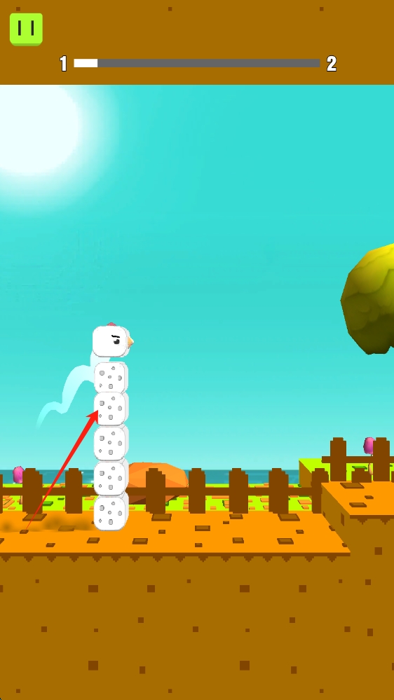2、游戲中,精準(zhǔn)操控方塊鳥(niǎo)堆疊方塊,穩(wěn)步前進(jìn),密切關(guān)注進(jìn)度條,完成當(dāng)前關(guān)卡任務(wù)。