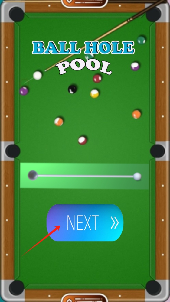 1、在Ball-Hole-Pool界面,點擊NEXT,開啟臺球進洞挑戰(zhàn),點擊按鈕進入到游戲當中。
