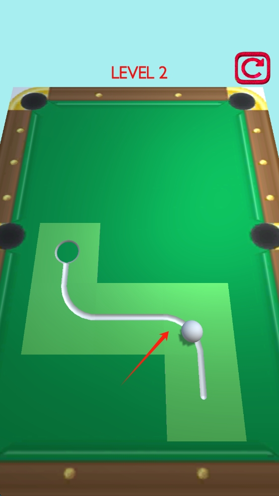 2、游戲中,專注引導球沿軌道移動,精準操控,順利完成Level-2的進洞任務(wù),滑動移動小球。