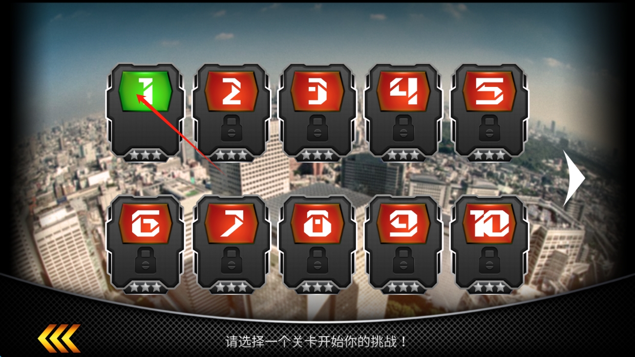 2、選擇第1關,從基礎開始,熟悉車輛操控和屋頂賽道規(guī)則,點擊選擇關卡。