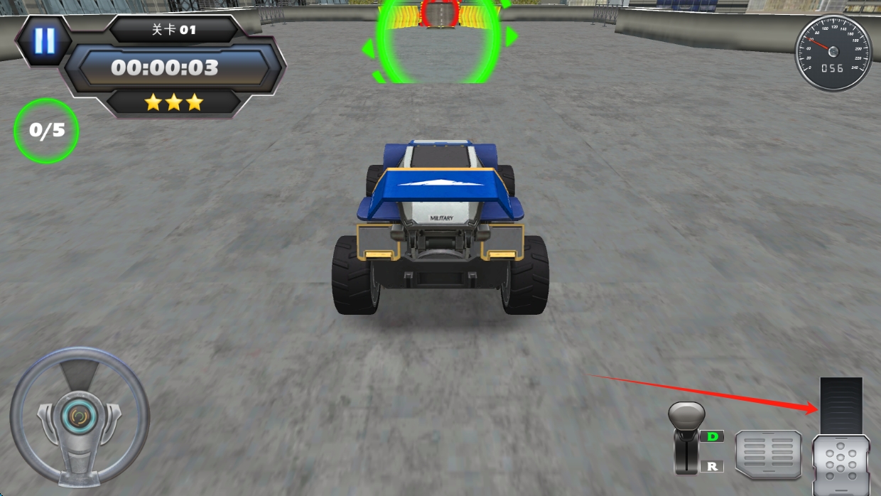 3、駕駛時,操控方向盤和油門,按提示完成收集任務,爭取三星評價,推進關卡進程,點擊加速。