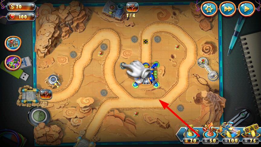 1、進入游戲后,在星際戰(zhàn)場地圖中查看入侵者的行進路線,選擇合適位置放置初始玩具防御單位,建立基礎(chǔ)防線。