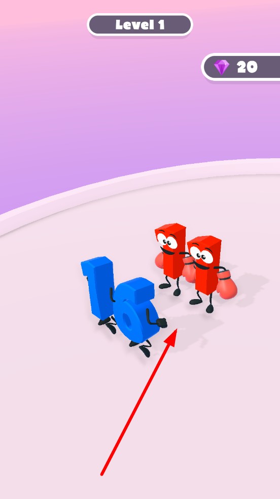 2、終點前會遭遇紅色敵方數字,快速心算敵我數值,雙方展開較量,若占據優(yōu)勢,則順利通關,若數值較低,則需要重新游玩。