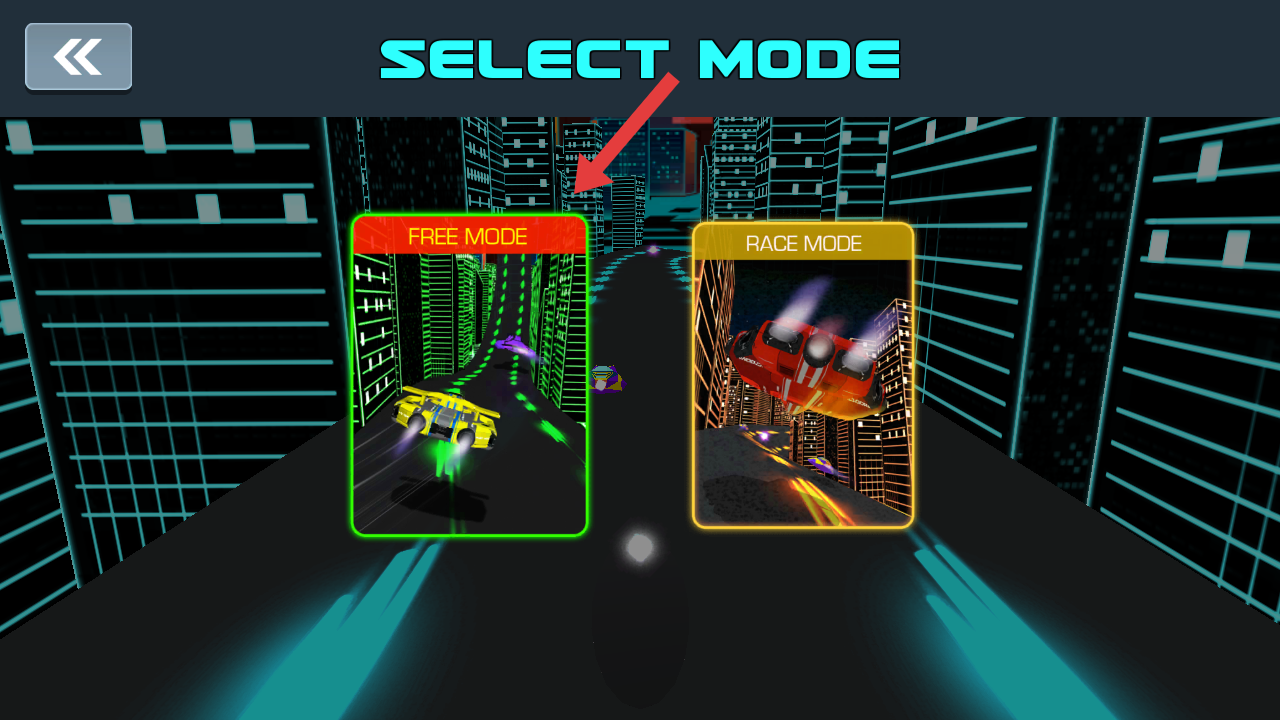 1、進入模式選擇界面,可以選擇點擊FREE MODE綠色框,自由的練習賽車操控,熟悉賽道機制。
