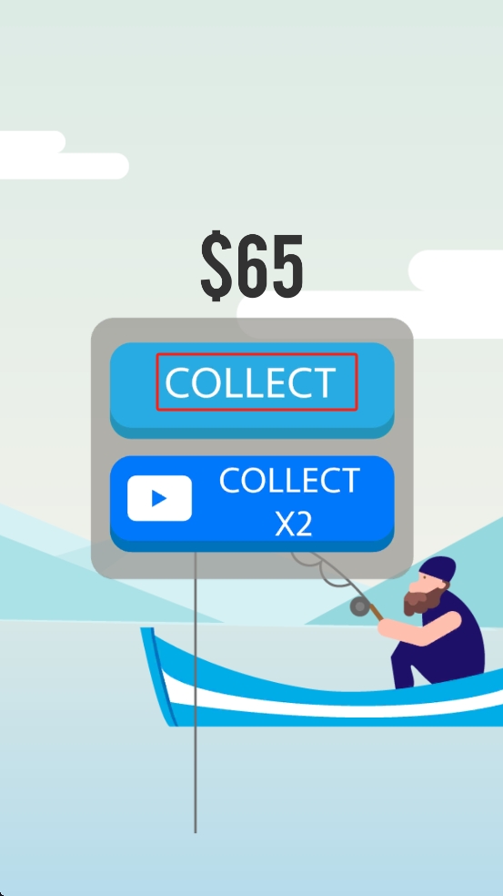 3、結(jié)束當(dāng)前釣程后,漁獲箱會自動分類換算成金幣獎勵,直接點藍(lán)色COLLECT按鈕收取金幣,快速積累資金用于后續(xù)升級。