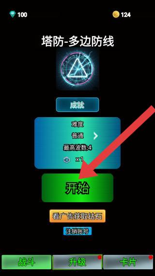 1、畫面顯示了游戲的標(biāo)題、成就以及最高波數(shù),新手玩家可選擇難度為普通,選擇后可點擊開始。