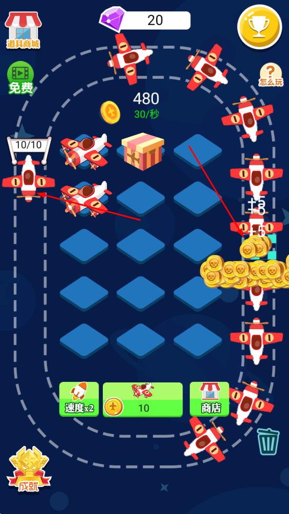 3、完成任務(wù)賺取金幣:設(shè)有多樣任務(wù),完成任務(wù)可獲取大量金幣,金幣可用于升級生產(chǎn)設(shè)施、解鎖新的飛機(jī)種類或加速合成過程,任務(wù)引導(dǎo)玩家逐步深入游戲。