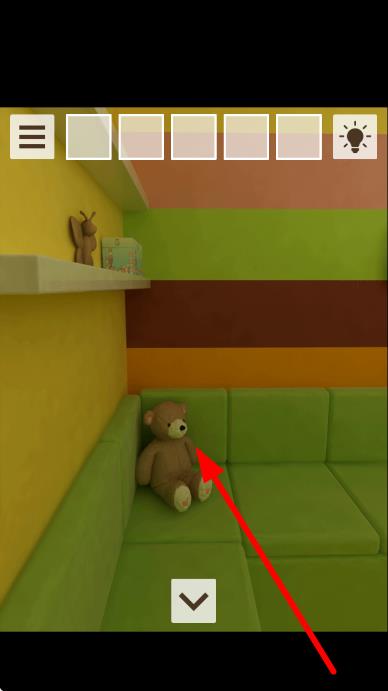3、來到房間注意綠色沙發(fā)上擺放的棕色小熊玩偶,點擊該小熊,查看是否能獲取隱藏物品或觸發(fā)相關(guān)劇情。