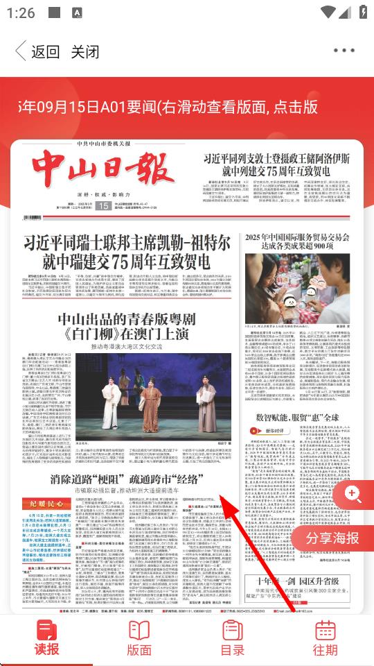 3、進(jìn)入看讀報紙后,選擇自己感興趣的報紙,如中山日報。