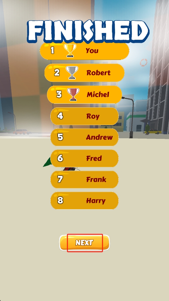 3、沖線后查看排名,確認(rèn)自己名次,點(diǎn)擊下方的NEXT按鈕進(jìn)入下一輪比賽,繼續(xù)挑戰(zhàn)更高的排名。