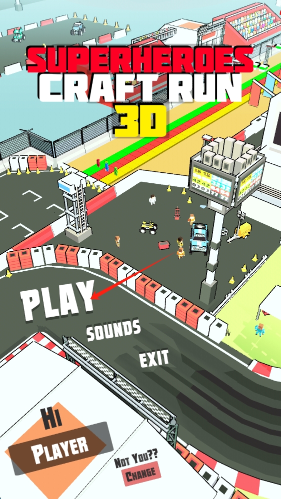 1、啟動界面,點擊PLAY,開啟超級英雄跑酷挑戰(zhàn),進入跑道關卡,點擊按鈕開始游戲。