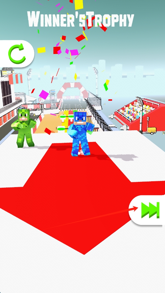 3、勝利界面,點擊綠色按鈕,領取勝者獎杯,解鎖下一關,繼續(xù)跑酷冒險,點擊下一關。