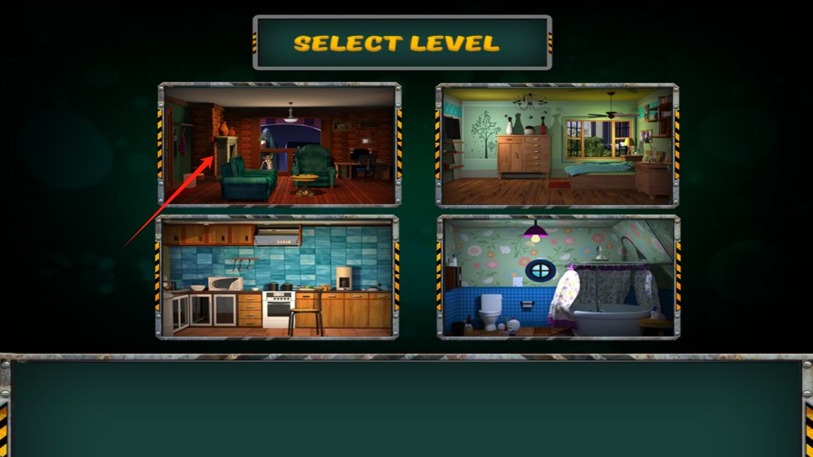 2、關(guān)卡選擇,點(diǎn)擊左上角房間場景,進(jìn)入該密室關(guān)卡,開始探索,點(diǎn)擊選擇地圖關(guān)卡。