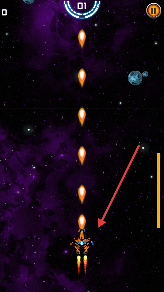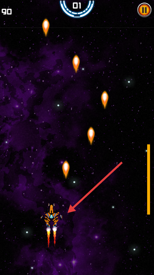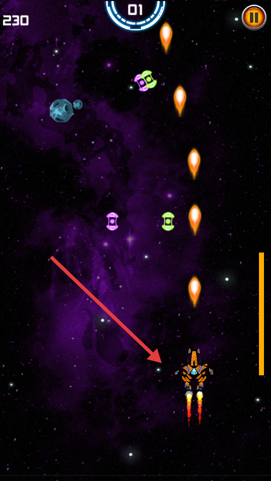 1、通過虛擬搖桿控制飛船移動,右側(cè)按鈕發(fā)射武器攻擊敵人。