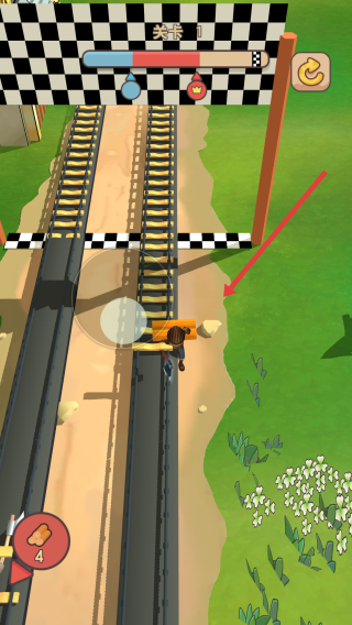 3、優(yōu)先填補靠近終點,黑白格旗的軌道缺口,要注意躲避場景中的障礙,盡快的完成軌道的鋪設(shè)。