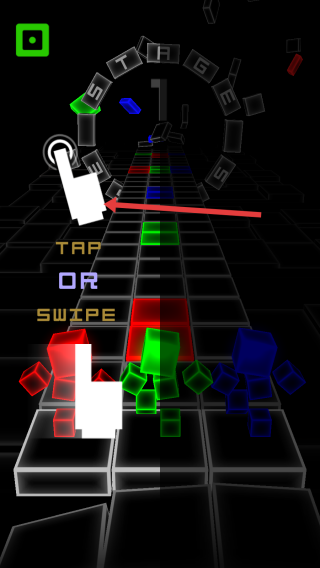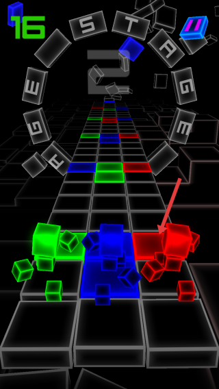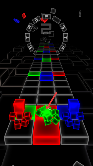 1、點(diǎn)擊或滑動(dòng)屏幕,控制方塊左右移動(dòng),避開(kāi)異色方塊,只走與自身顏色紅、綠、藍(lán)的匹配的路徑。