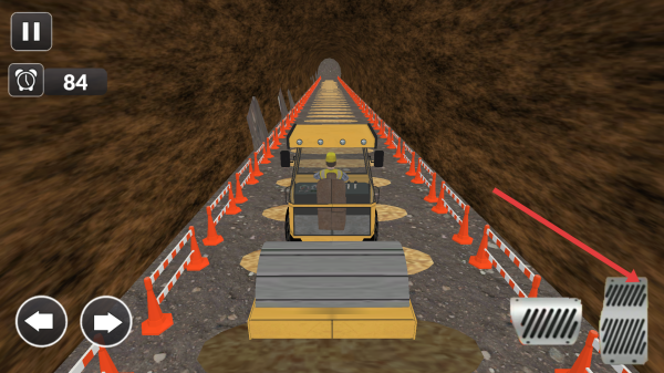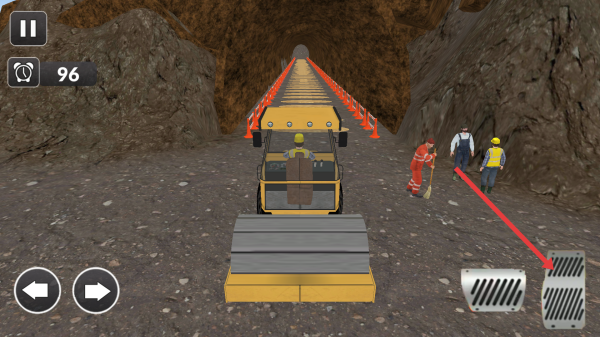 1、用左右的箭頭按鈕來控制車輛的方向,避開了隧道口的工人,繼續(xù)的駛入施工的區(qū)域。