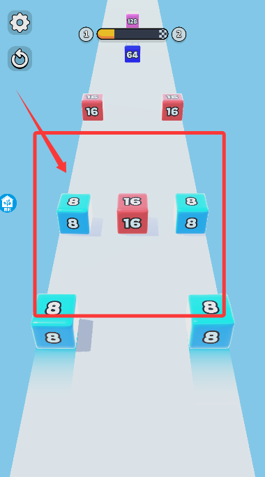 2、靈活避開高數(shù)值方塊,優(yōu)先碰撞等值或低值方塊實現(xiàn)數(shù)字翻倍增長。