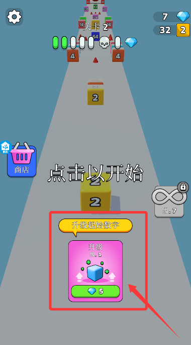 4、新關(guān)卡準備階段,消耗寶石提升初始數(shù)值,為后續(xù)合成創(chuàng)造優(yōu)勢條件。
