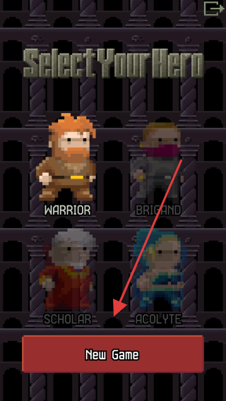 1、打開(kāi)Pixel Yet Another Dungeon,點(diǎn)擊Play進(jìn)入,選喜歡角色如戰(zhàn)士 ,點(diǎn)New Game開(kāi)啟地牢冒險(xiǎn)。