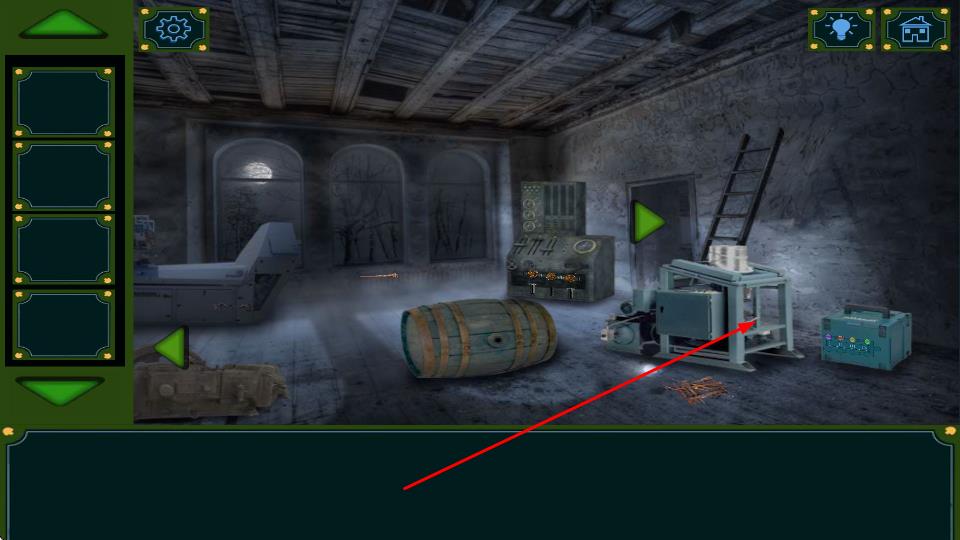 2、進入廢棄房間,探索木桶、機械裝置等元素,點擊互動獲取關鍵道具或提示,推進場景解謎。