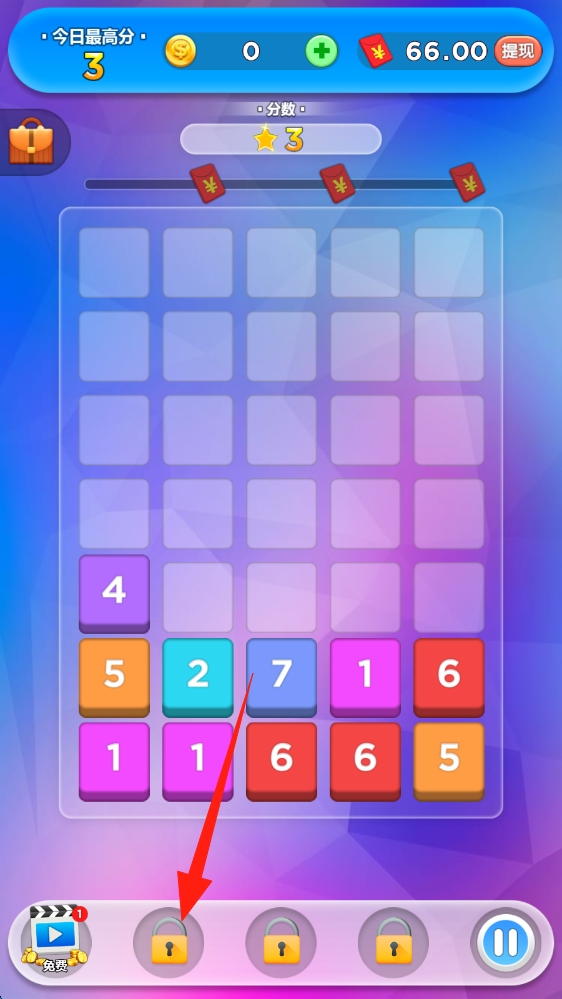 2、積累分?jǐn)?shù)解鎖下方鎖定圖標(biāo),開啟新功能或關(guān)卡,拓展游戲玩法,點(diǎn)擊使用道具。