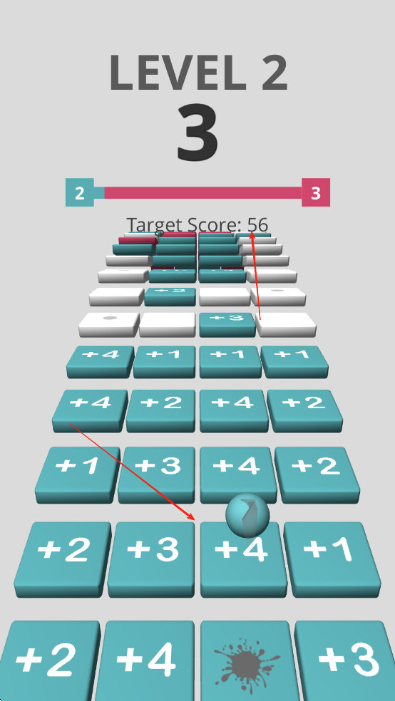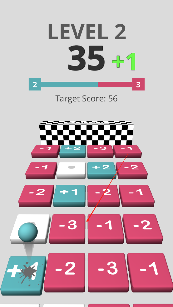 3、每完成一個關(guān)卡,下一個關(guān)卡的目標數(shù)字就會更高,到達終點的時候如果沒有到達目標數(shù)字只能重新開始挑戰(zhàn)。