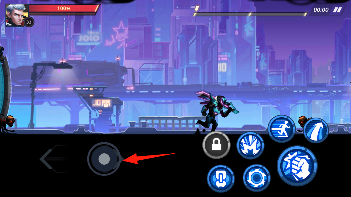 2、戰(zhàn)斗時(shí),通過(guò)左側(cè)搖桿控制角色移動(dòng),躲避敵人攻擊并調(diào)整戰(zhàn)斗位置,撥動(dòng)輪盤移動(dòng)人物。