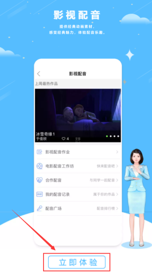1、點(diǎn)擊紅框立即體驗(yàn)按鈕,開(kāi)始使用影視配音。