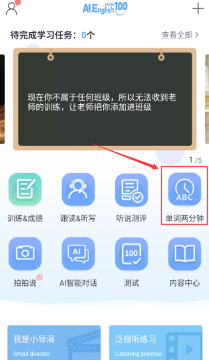 3、選擇紅框單詞兩分鐘,進(jìn)入詞匯學(xué)習(xí)功能。